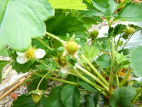 前回、裏庭を見た時には、無かったイチゴ畑と、プチトマト畑ができていました。イチゴは、白い花が咲いていて、まだ小さいですが、実もたくさんついていました。プチトマトにも黄色の花がついており、畑を管理しているスタッフに確認すると、「プチトマトは2か月もすると、できるのではないかな?」と話てくれましたので、ちょくちょく畑をみて、ご紹介しま~す!(^^)!