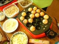 7階は、たこ焼きパーティーを行いました。たこは、入っていませんでしたが、チーズがとろとろして、アツアツ、ふわふわでとても好評でした(^^)