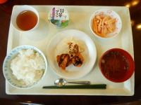 今日の昼食は鶏肉の照り焼きでした(^^)甘辛いタレが鶏肉によく絡み、ほのかに香ばしくてとても美味しかったです。付け合せのアスパラガスとヤングコーンも甘味が感じられて鶏肉によく合っていました☆