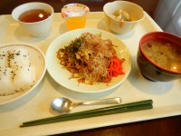 今日の昼食は、焼きそばでした(^^♪青のりと鰹節がたっぷりかかっていて、食べごたえがあり紅ショウガがアクセントになっていて美味しかったです✨里芋の煮物は中まで出汁の味がよくしゅんでいて柔らかくとても美味しかったです(^^♪