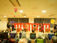 今日は花祭りがあり、天晴座(あっぱれざ)の方に来て頂きました。和太鼓の迫力ある演奏に驚かれたり、感動され涙を流しておられる入居者様もいらっしゃいました(^^)メインの花笠音頭や、南京玉簾を披露して下さり、入居者様は太鼓のリズムに合わせて手拍子や体を動かしたりして喜ばれている方もいらっしゃいました。スタッフも一緒に手拍子などで参加し、楽しませて頂きました(^^)v