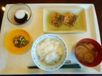 鰆の木の芽焼きは、山椒風味のタレで焼いてあり香り高く、とても美味しかったです(^^)付け合わせはオクラとレンコンでした♪春の炊き合わせは菜の花・がんもどき・タケノコで今日の昼食はとても春らしく晴れやかなメニューでした(^^♪