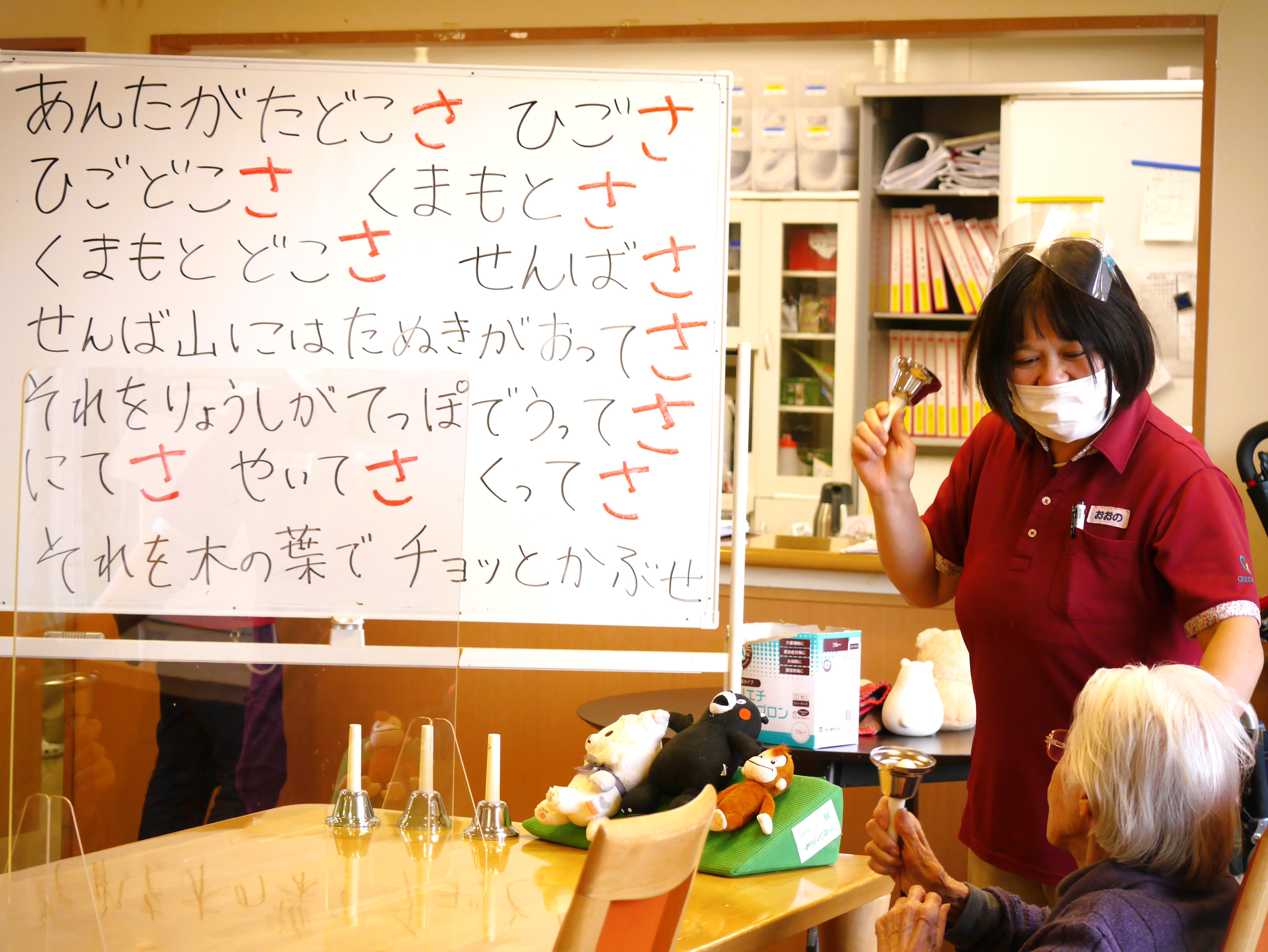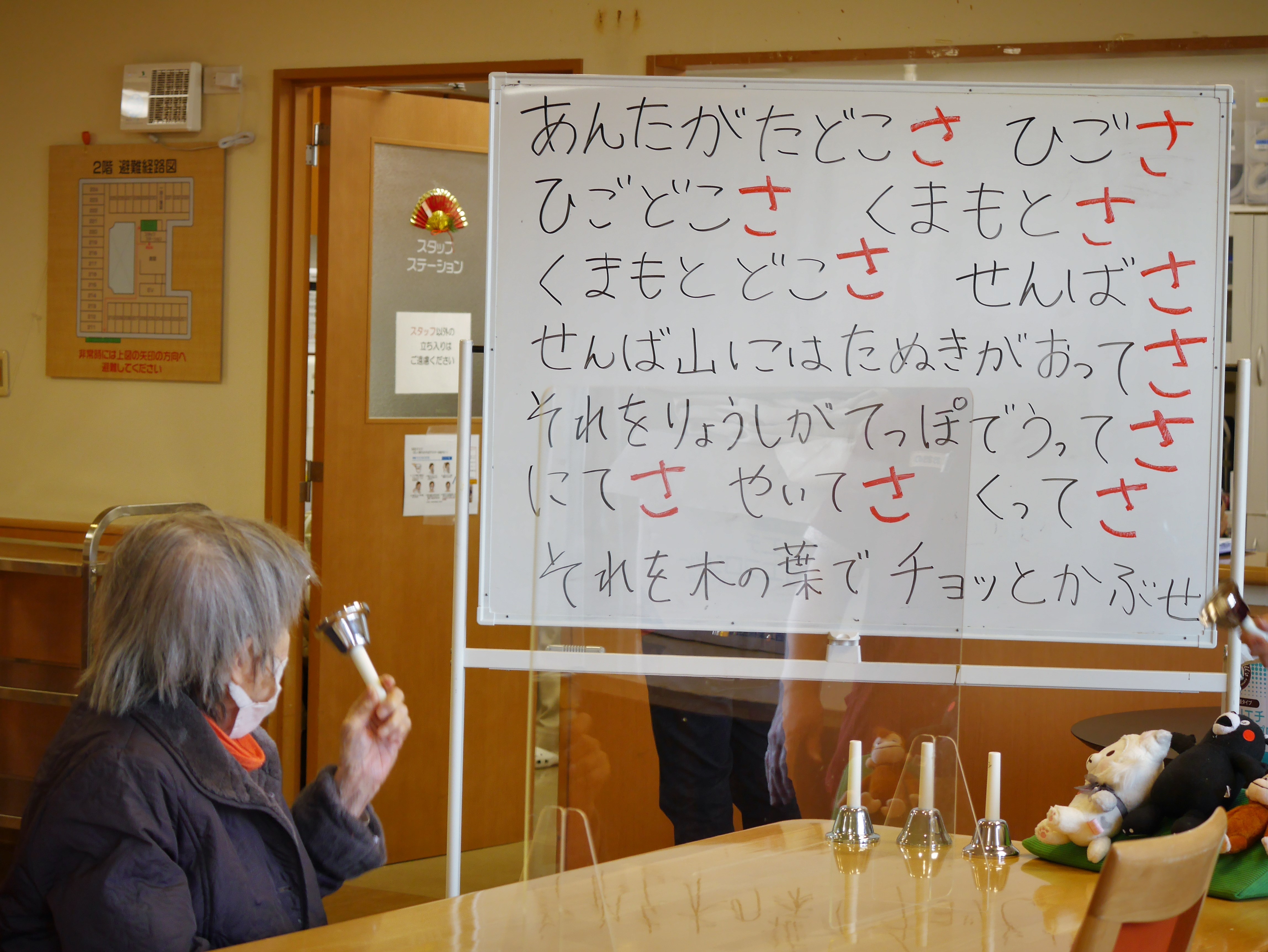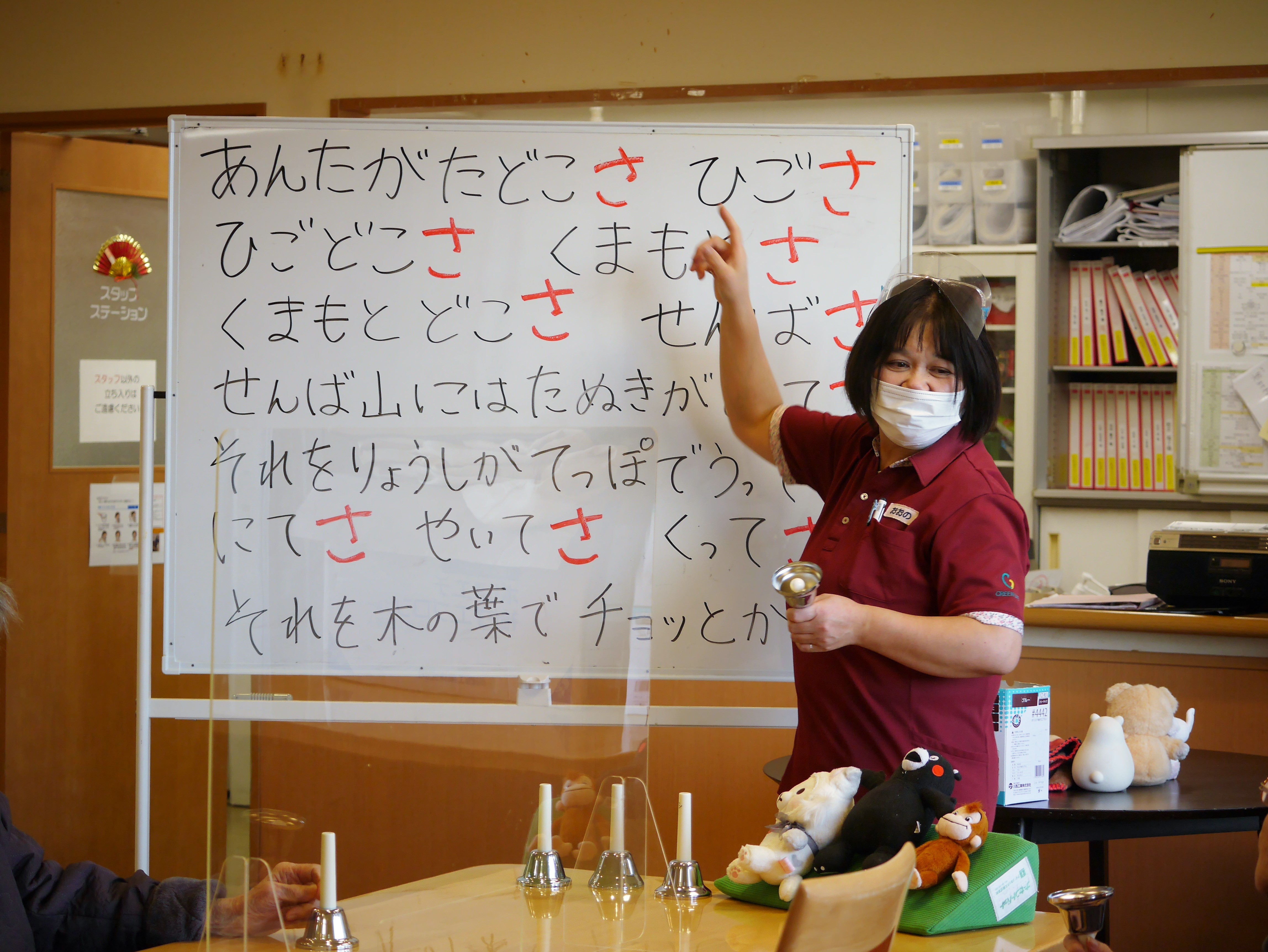 「あんたがたどこさ」の童謡に合わせてスタッフが歌い