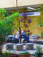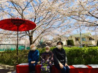 スタッフと一緒に、敷地内の桜を見にプチ外出した入居者様は