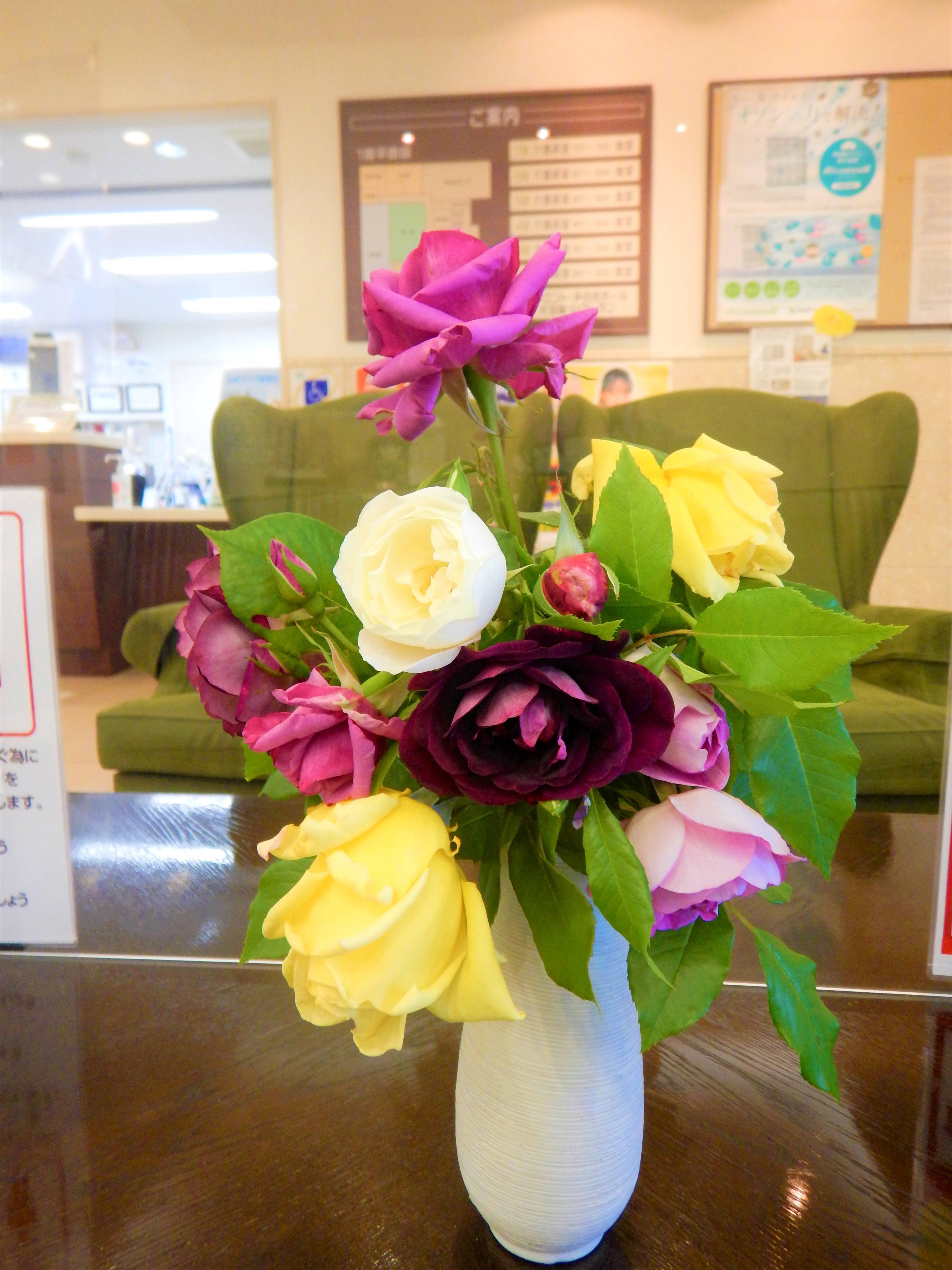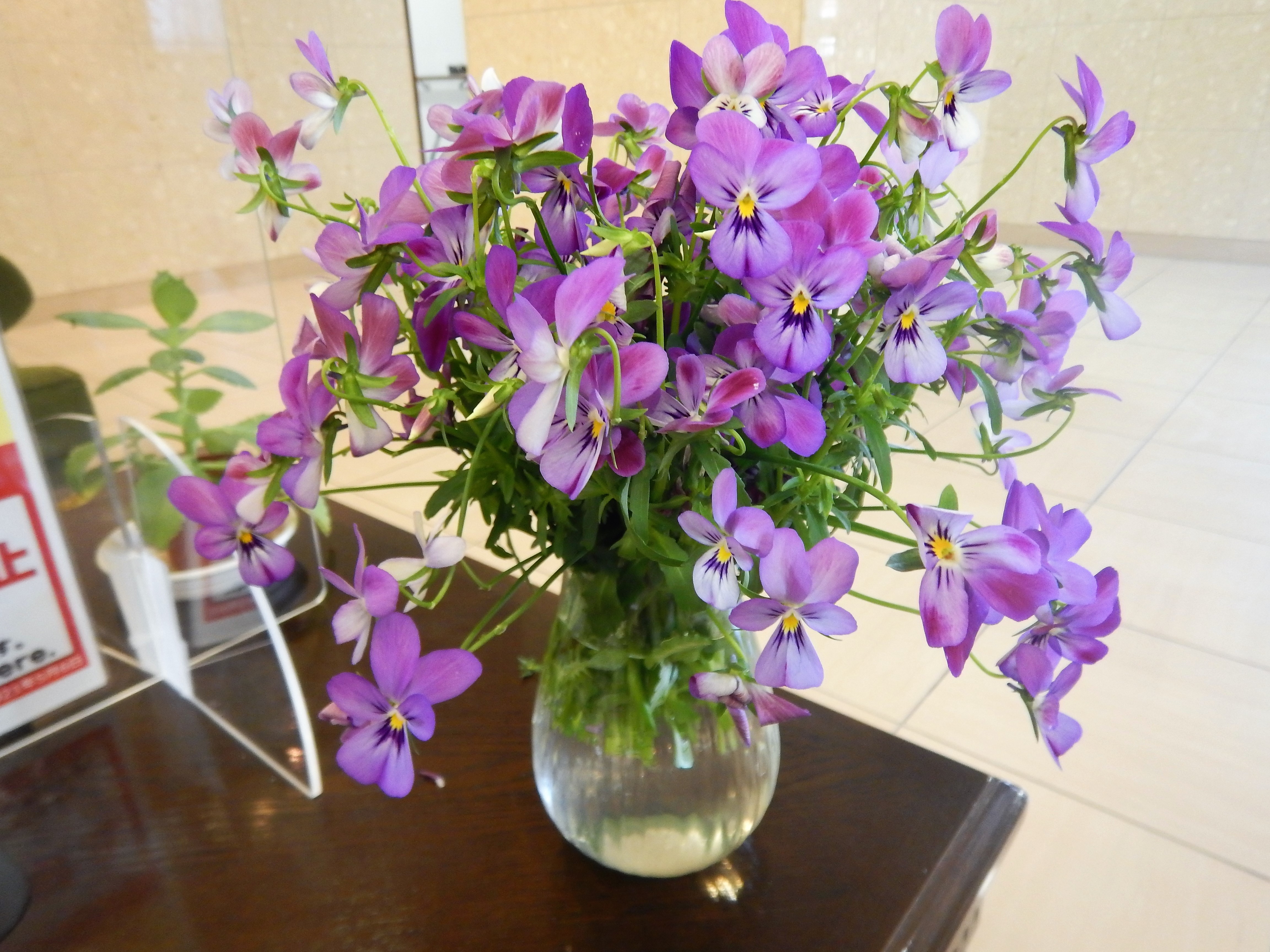 それを職員が花瓶に生けてくれて、1階事務所前のロビーに飾っています🌼