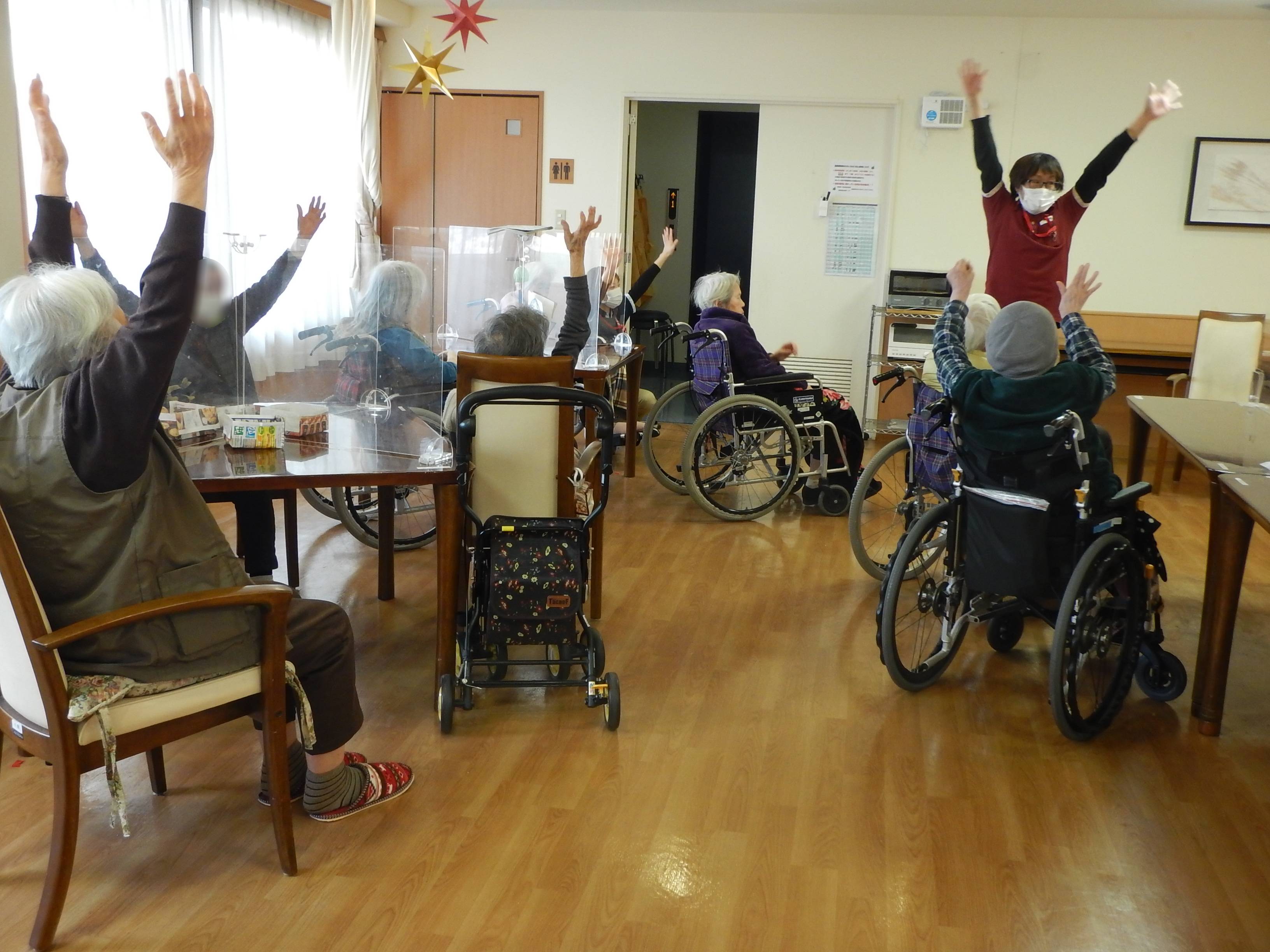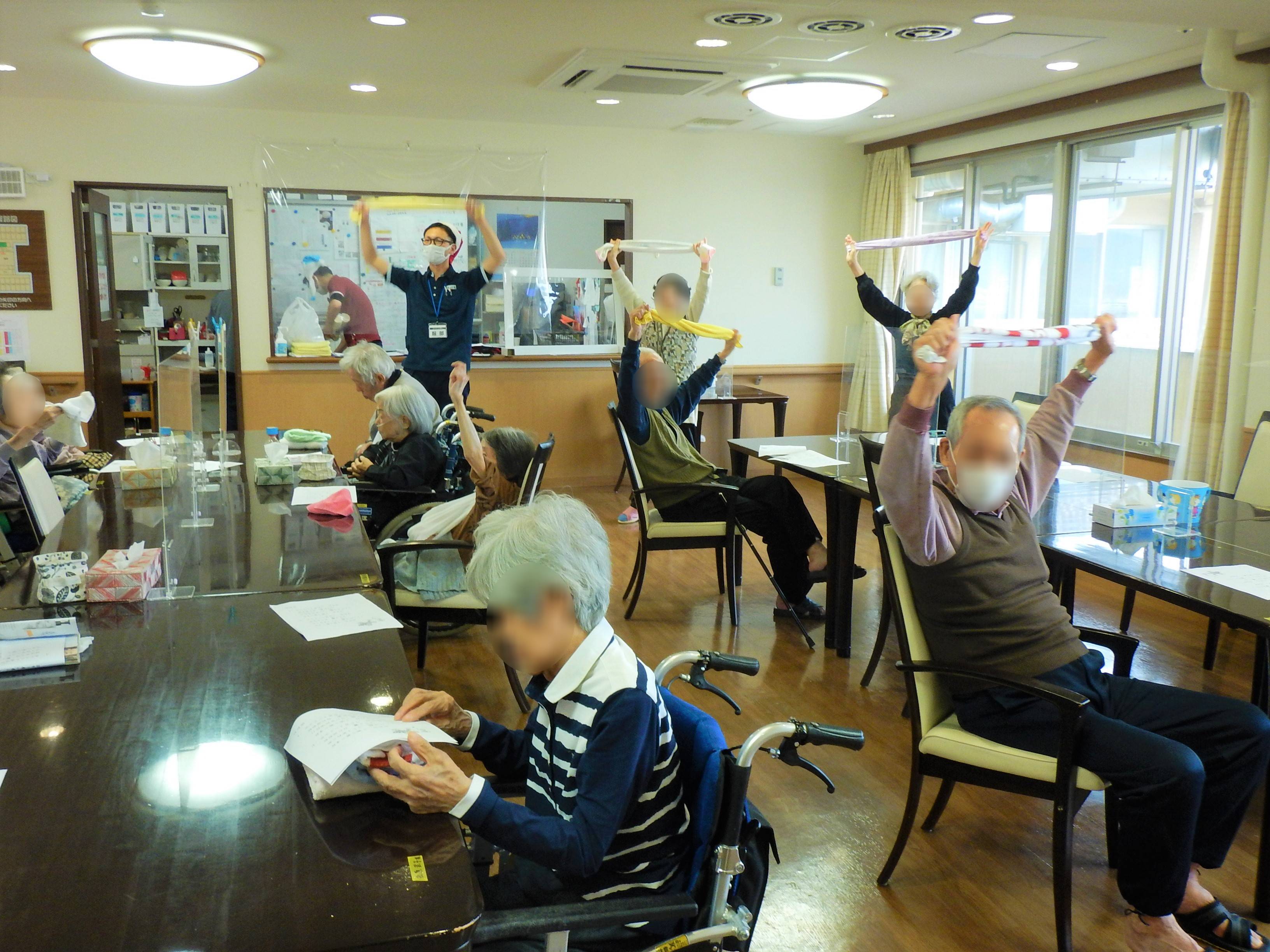 外は寒いですが、7階では元気よくタオル体操が行われておりました😆