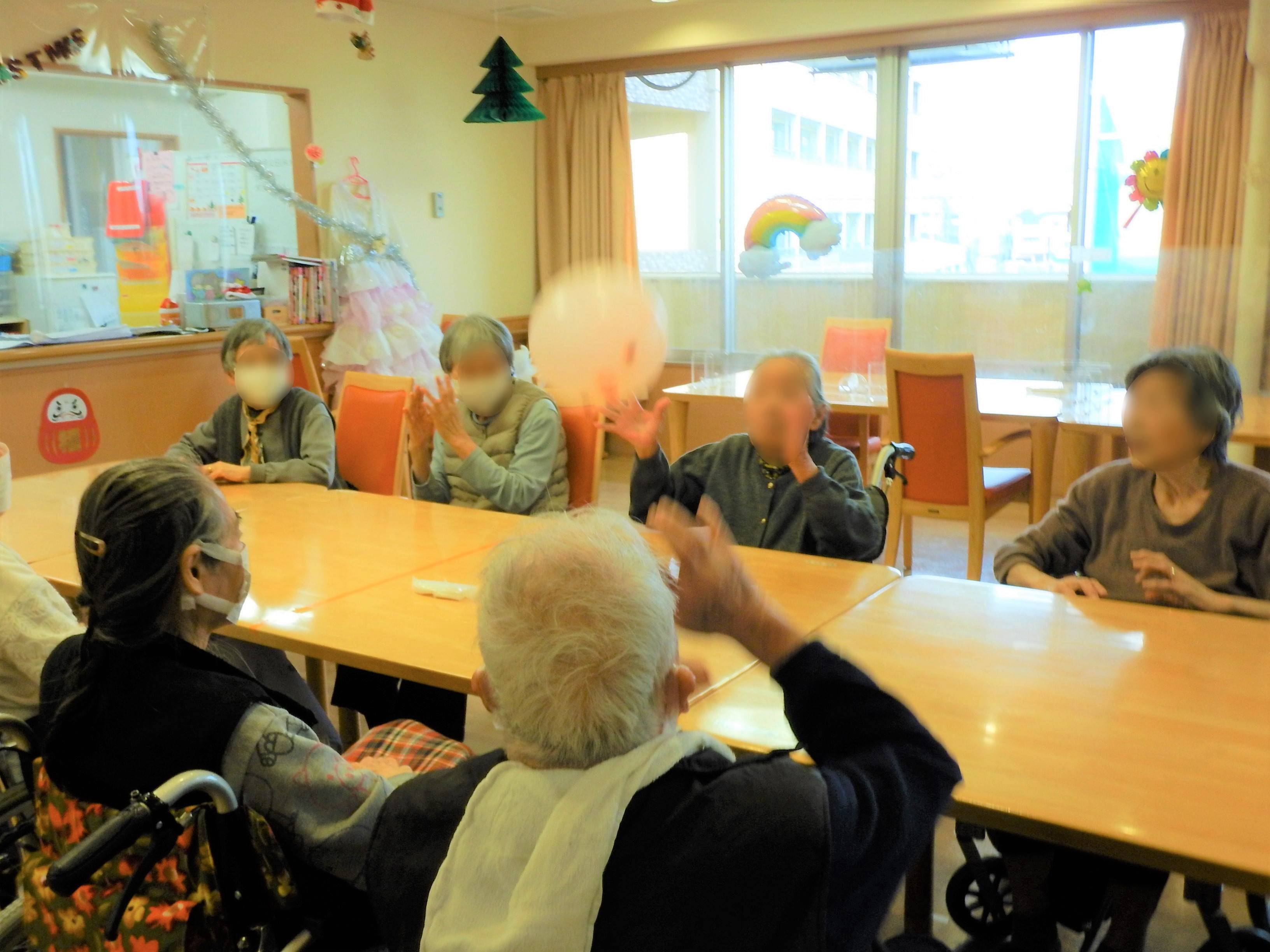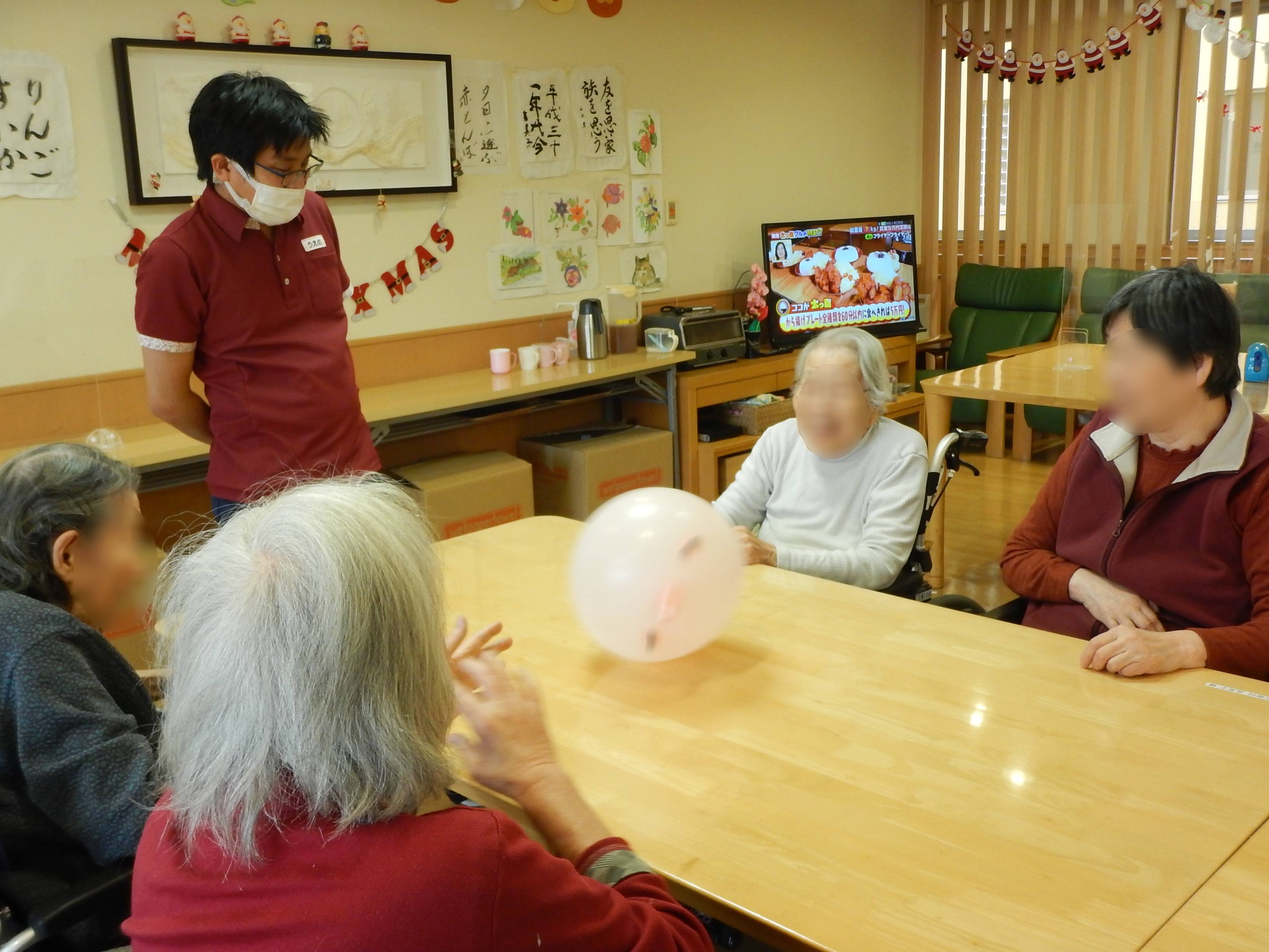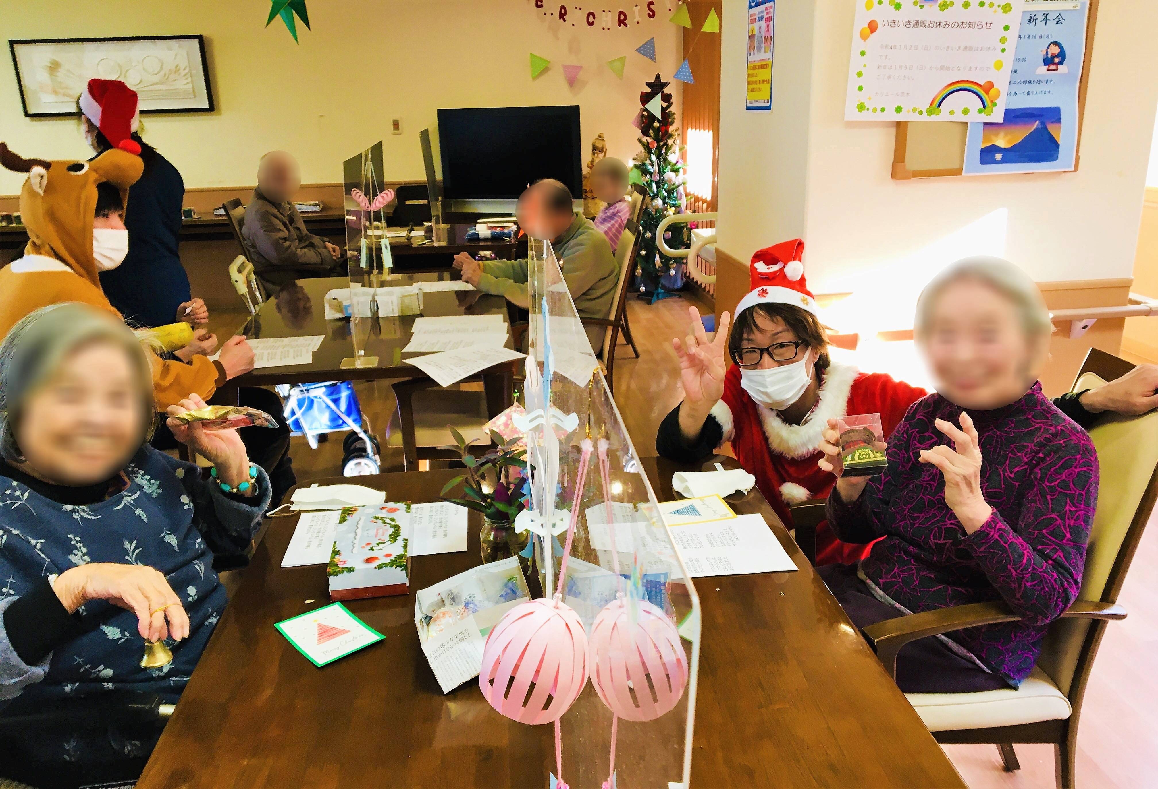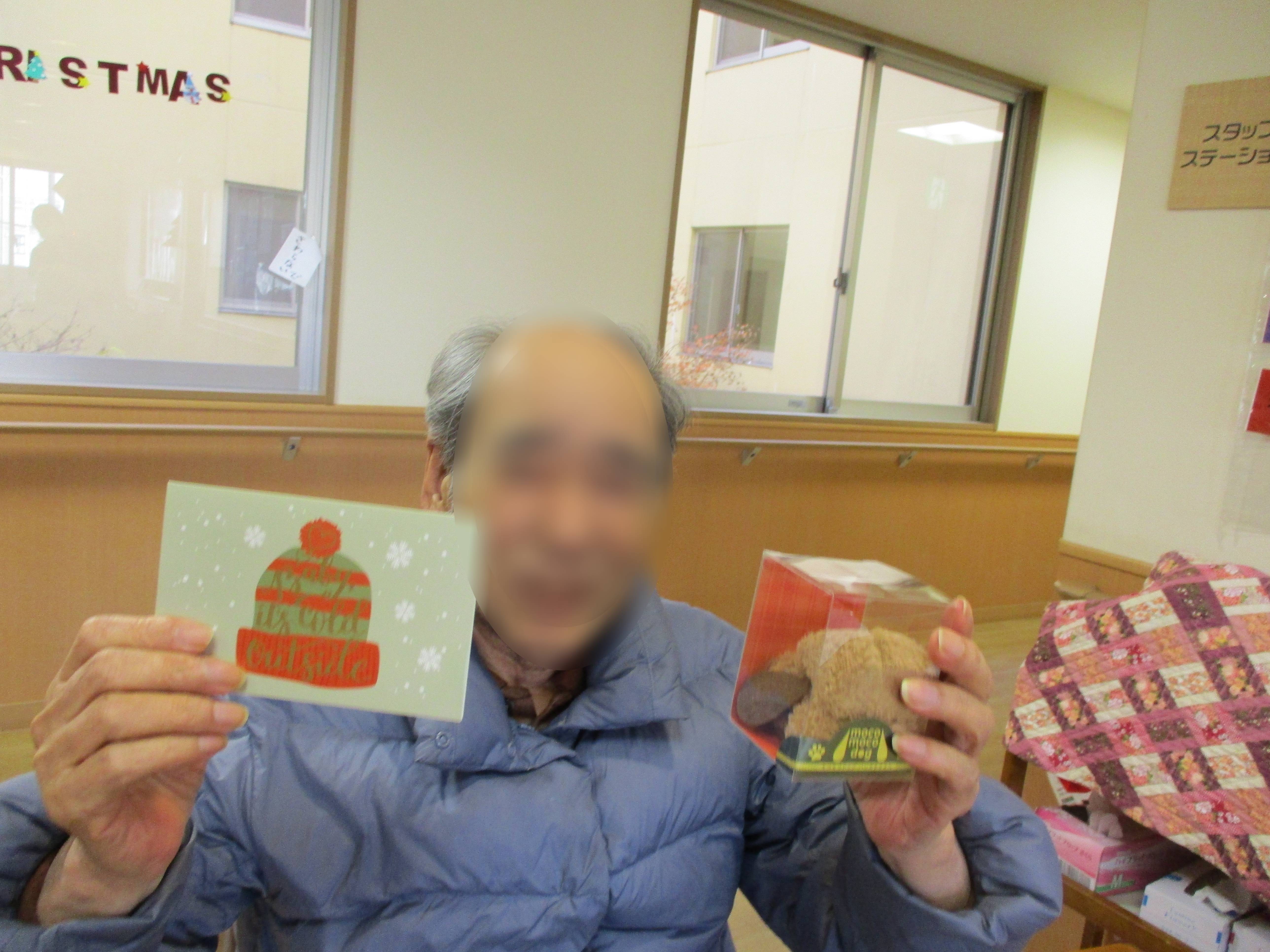 入居者様はサンタ帽をかぶって、