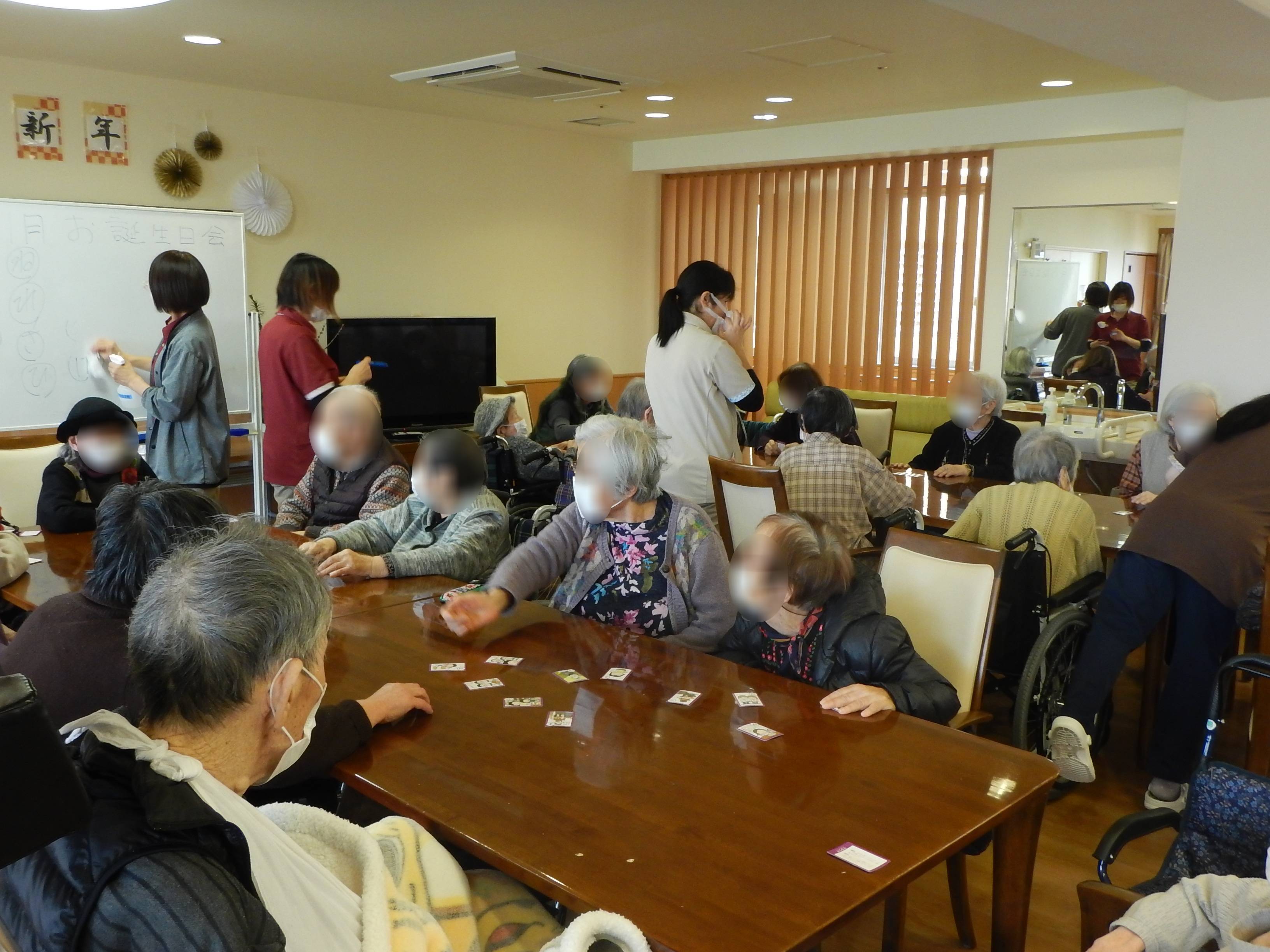 プレゼント🎁をお渡しして、皆でカルタや福笑いをしたり