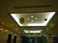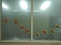 1階玄関の自動ドアが開くと目線は上へ、宙に浮いているひまわりを見られたり、編み込みのようなひまわりをどのように作られてあるのか、近距離で眺められたりと皆様楽しまれていらっしゃいましたよ!