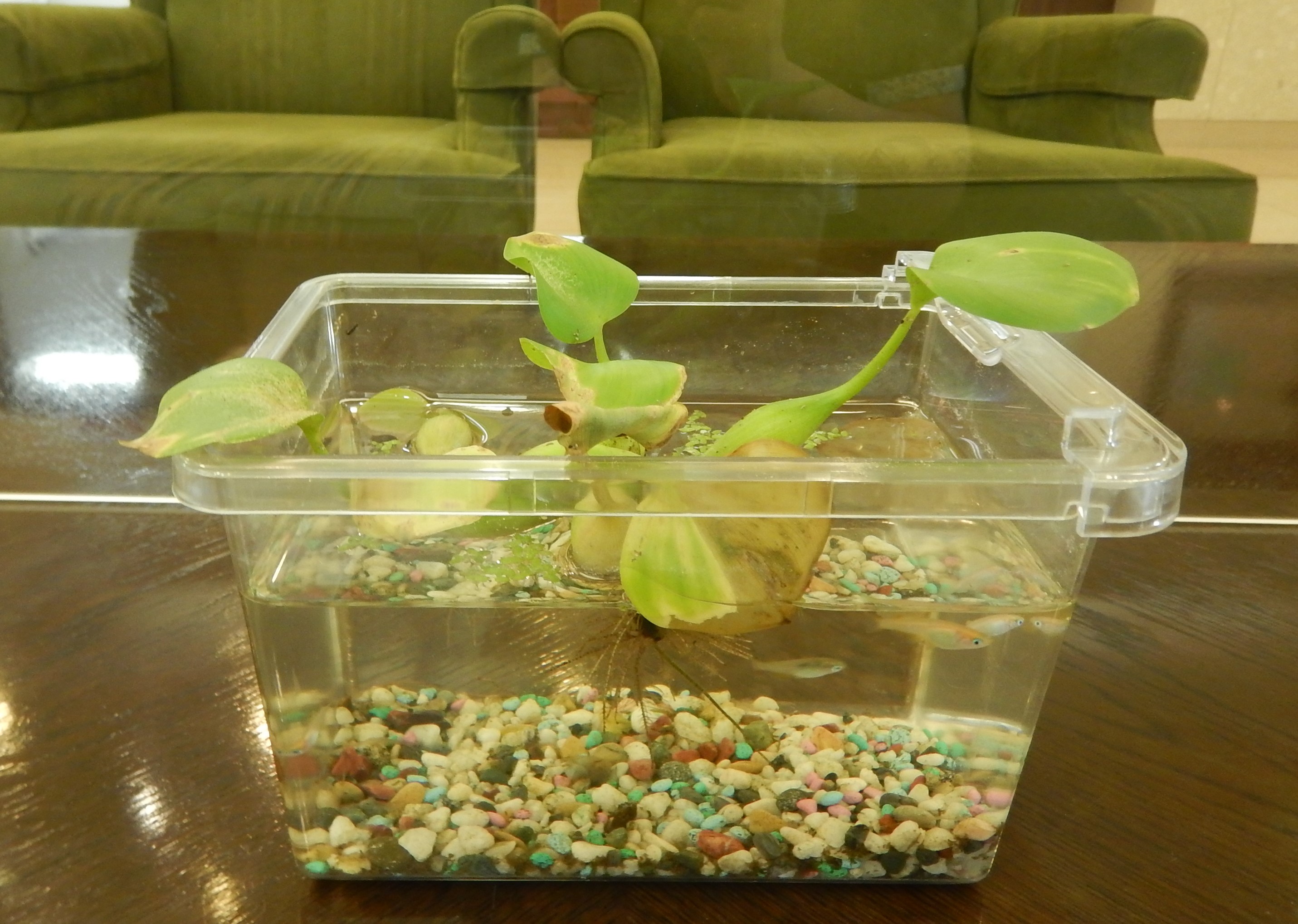 スタッフが自宅から持ってきた、メダカも1階のソファ前のテーブルにお目見えです。元気にスイスイ泳いでいます(^^♪カワイイ!!