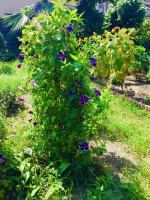 駐車場の裏庭の花もひまわりから朝顔へ紫色の朝顔も綺麗ですね👍