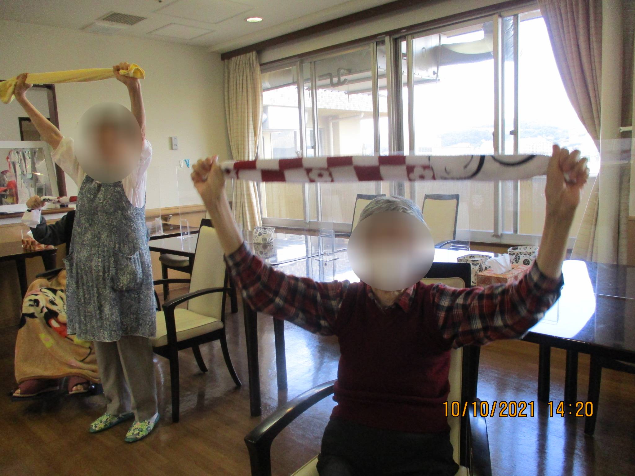 それから、お祝いのタオルを使って、曲に合わせタオル体操を元気よくされてましたぁ!(^^)!