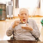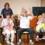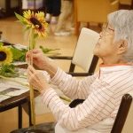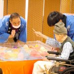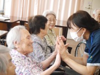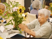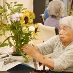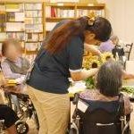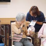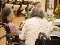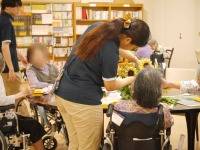 お隣席の入居者様とお話しながらや