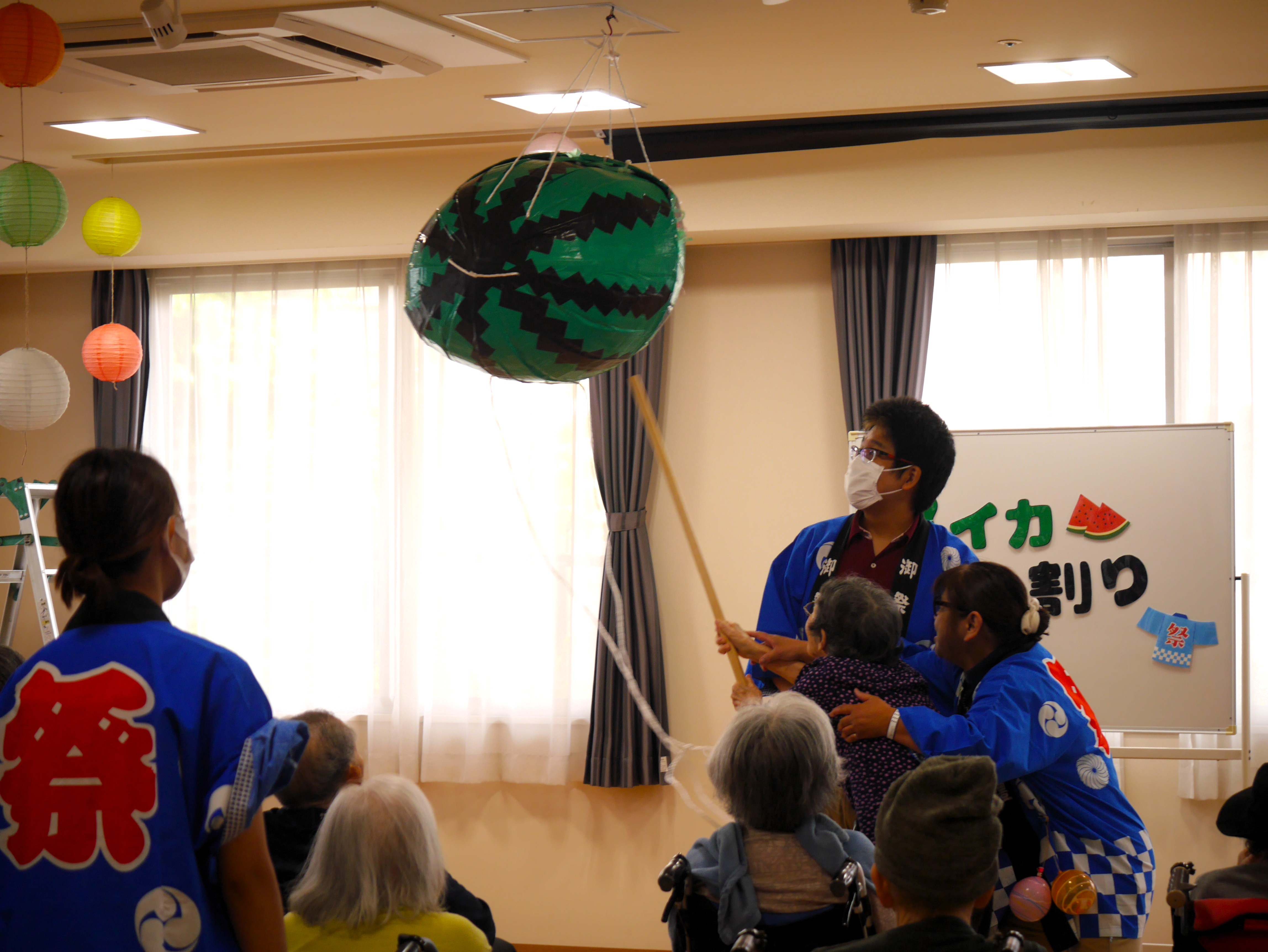 割れませんでしたが、スイカは切って入居者様に