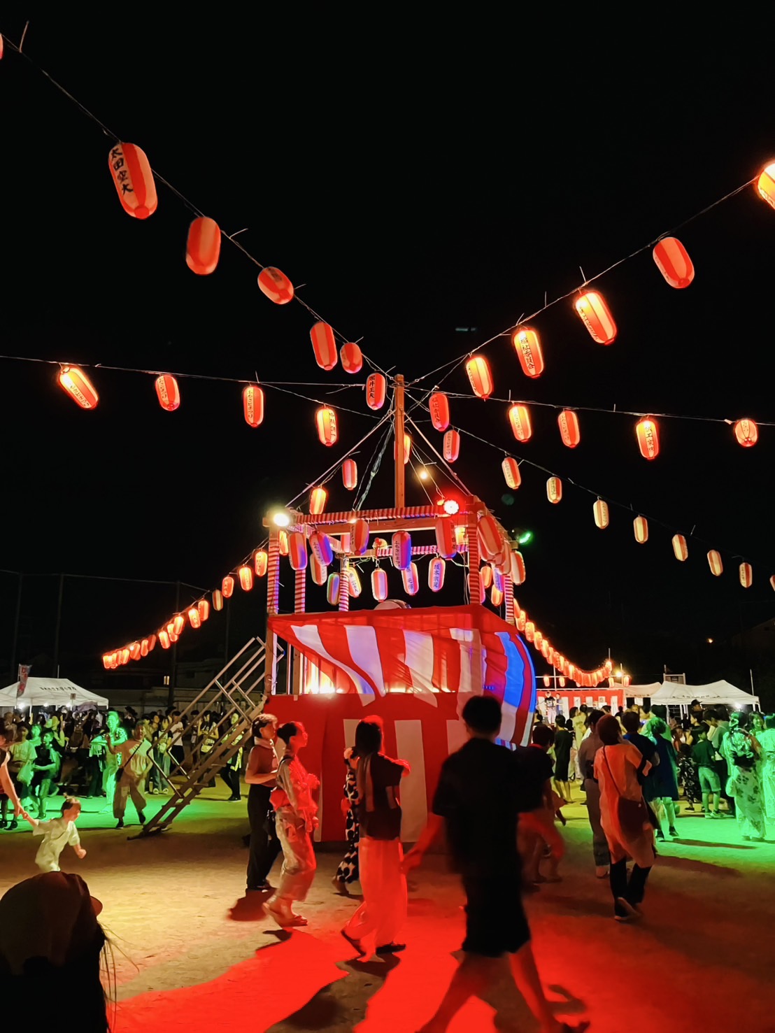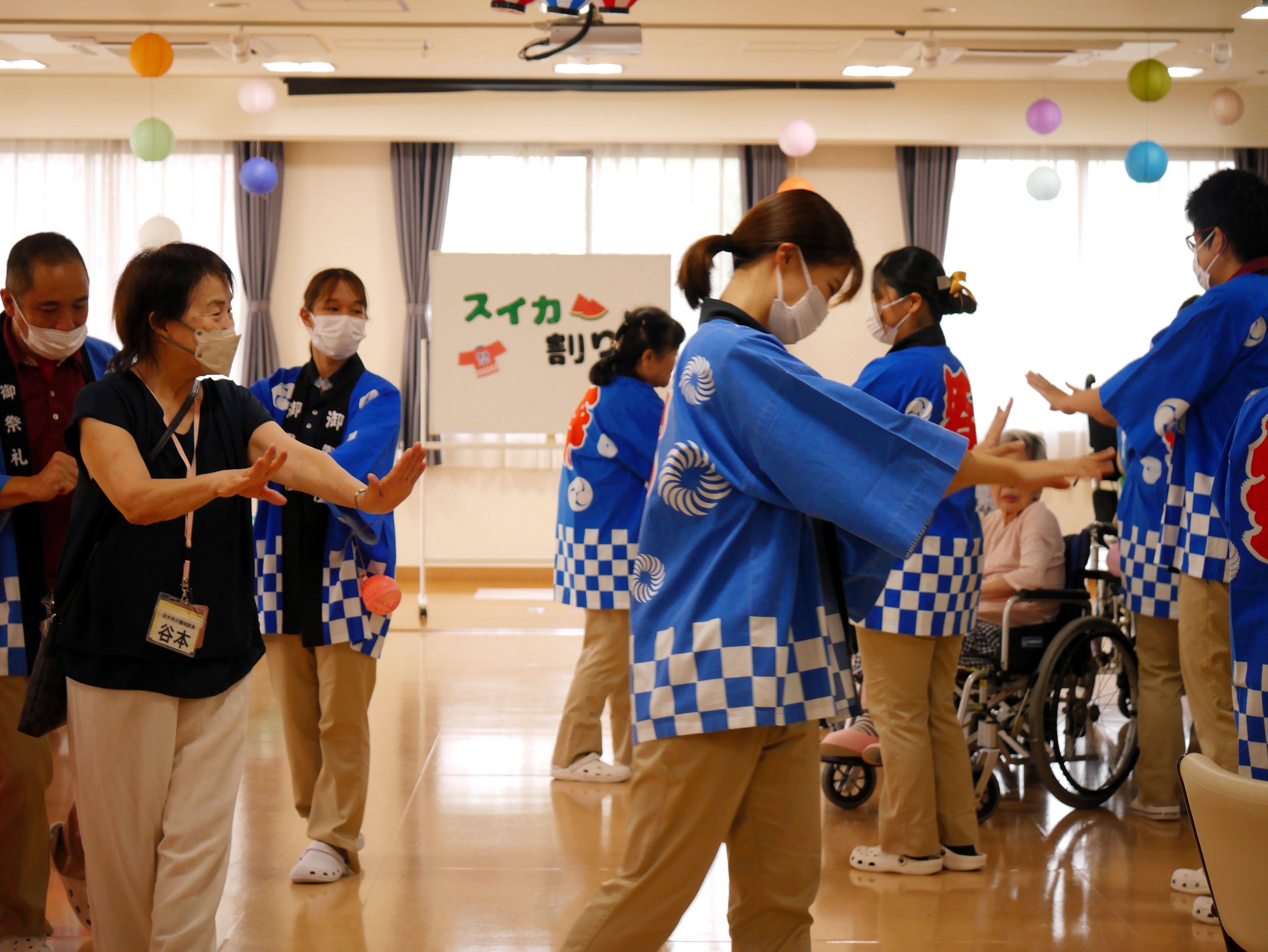 スタッフが盆踊りをしているところを見ながら