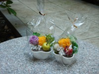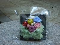 スタッフ手造りの感謝状とデコレーションアートのフラワーをお渡し、こちらもスタッフ手造りの金色のくす玉で中からは、