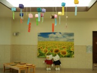 玄関ホールのキティちゃんとダニエル君も仲良く手をつないで、夏のひまわり畑でお散歩中ですね( ^^)