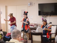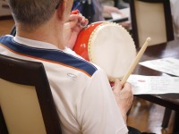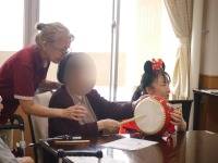 入居者様にも太鼓を叩いてもらったり、皆で歌ったり