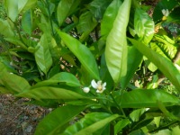 バラだけでなく、みかんの花も咲いており、トマトも育てています。