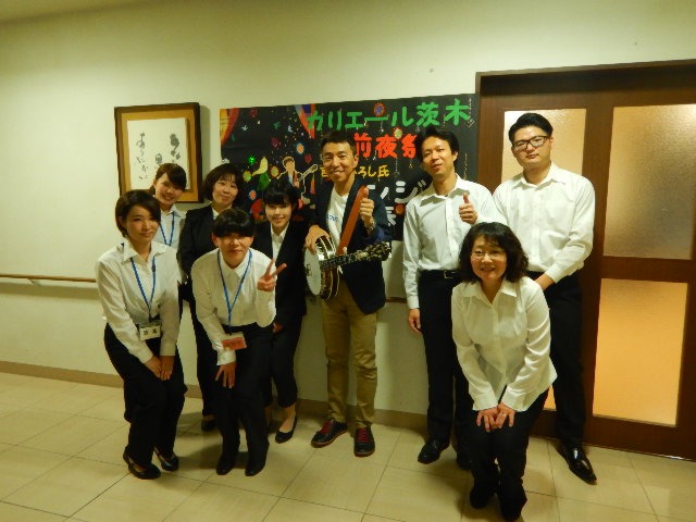 カリエール茨木10周年記念の前夜祭として、18時より「吉崎ひろし様によるバンジョーの演奏会」を行いました✨「夜のカリエール」をテーマに多目的ホールでBARのような雰囲気に装い、飲み物、おつまみをつまみながら演奏を楽しんでいただきました🍷オリジナルの曲からカバー曲まで約1時間に渡り行われました🙆知っている曲を口ずさんだり、手拍子が自然に出たり皆様楽しまれていました✨演奏終了後は拍手が鳴りやまず「また来てほしいな」「いい夜だった」とおっしゃられていました😁10周年前夜祭にふさわしい盛り上がりでした👨
