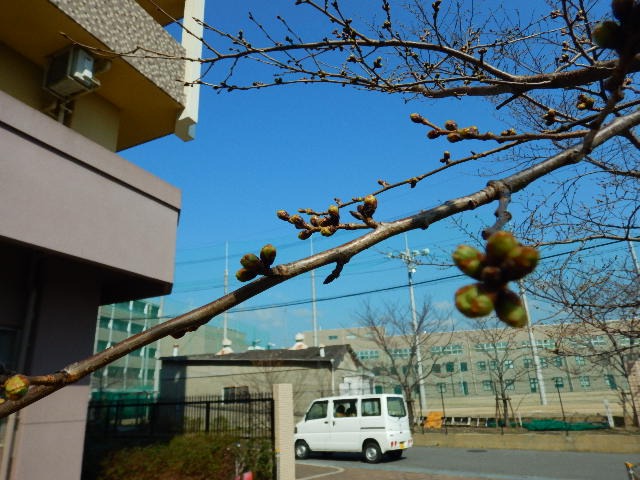 カリエールの駐車場入口にある桜の木の紹介です✨ここ最近は暖かくなってきたので毎日少しづつ大きくなってきています✨この桜が満開になったころやっと春になったなと感じます✨早く春が来てほしいですね😉