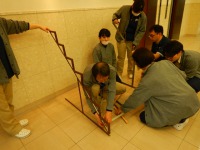 ひな壇を組み立てて、それから、お雛様、お内裏様、三人官女、五人囃子と並べていくのですが、見本を見ながら並べていたのですが、なかなかうまく並べられず、悪戦苦闘しました(^_^;)