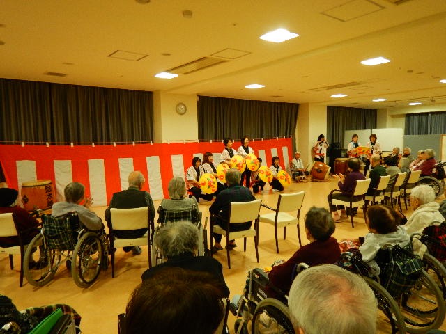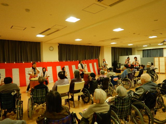 たかつき和太鼓叩こう会「鼓太舞」による和太鼓と獅子舞を披露していただきました🙌多数の入居者様・家族様が参加されました★入居者様にも太鼓を叩いていただいたり、獅子舞が順番に入居者様にかぶりついたり🐯大変喜ばれていました✨入居者様・スタッフ共に良い新年のスタートがきれました★