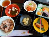 エビ、ブリ、黒豆などに、赤飯がついており、