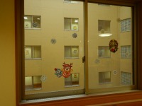 3階のエレベーター前の壁と、廊下の窓に他の階とは、一味違ったレトロな雰囲気の飾り付けをしています(^^)