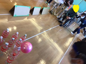 ピンはペットボトル、ボールはゴムボールでしたが、