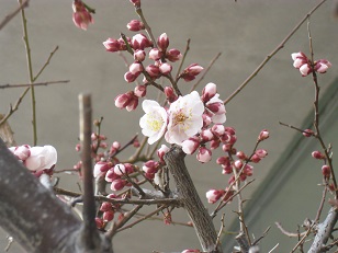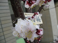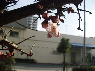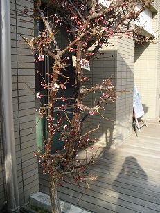 エスペラル城東の玄関前にある吉田梅の開花です☆