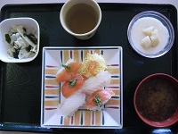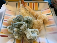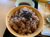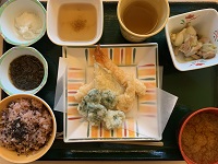 今日もお赤飯に天ぷら、もずく酢に赤だしと