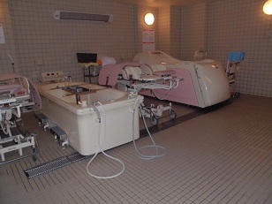手前がスピノといって、寝たまま入浴できる設備、