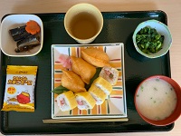 巻きずしや菜の花の和え物、鰯の鰹煮など