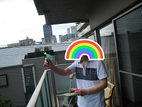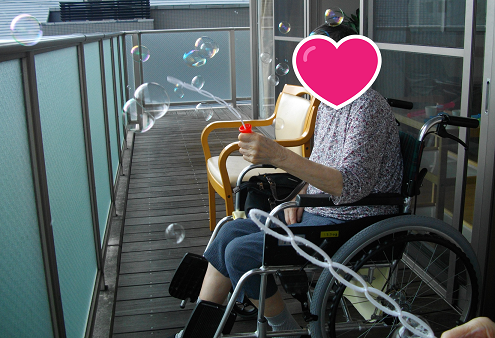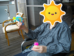 少しベランダへ出てシャボン玉遊びをしてみました(*^^)v