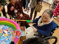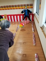 室内の魚釣りや的当て、ボウリングや輪投げなどのゲームコーナーでは、スタッフも頑張って盛り上げてくれたので、入居者様や家族様にもとても楽しんでもらえました♪♪!!