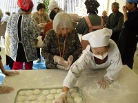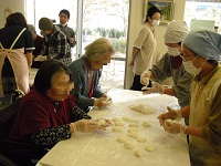 お餅つきのあとは、ロビーでお餅を丸める作業を入居者様に手伝ってもらいました!!