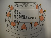 毎月1日は誕生日食ということで、赤飯や天ぷら、ケーキなどのメニューになっています!