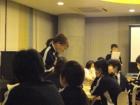 認知症の方に接するときの目線や距離、話しかけるトーンや触れる際の注意点など、実際の映像を見ながら学びました。