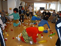4人の鬼が各フロアを順番にまわり、入居者様は準備をしていた豆に見立てた紙のボールで鬼を退治しました!