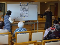 ハーモニカの演奏に合わせて、皆さん楽しそうに歌を歌っておられました。