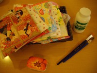 デコパージュとは、紙に描かれた模様や絵の切り抜きを貼って、物の表面を飾り、コーティング剤を塗り重ねていく工芸です。