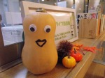 かなり形が変わってしまって売り物ならなかったかぼちゃを、かわいらしくアレンジしたかぼちゃの飾り物です!