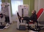3階のリハビリルームでは、入居者様がマシンを使ってリハビリに励んでいます。