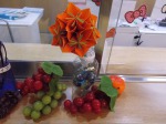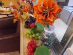 入居者様から頂いた素敵なオレンジの折紙を中心に落ち葉や紅葉、柿など秋の風景が広がっています♪
