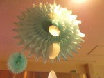 壁一面の夏の代名詞のヒマワリと爽やかな水色の折り紙のコラボや、折り紙には風鈴やウィンドチャイムなどの雑貨も入っていて、目からも耳からも夏の雰囲気を味わえます♪
