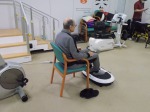 3階のリハビリルームで、スタッフの指導のもとマシンを使用して