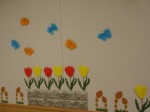 3階の廊下には、チューリップの飾りや色紙で作ったチョウチョが登場して、春らしい華やかな雰囲気が出ています!