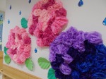 全体で2mは超える大きな虹に、巨大紫陽花!またてるてる坊主など梅雨のうっとうしさを吹き飛ばすようなきれいでダイナミックな飾りで、入居者様の目を引いています🎶