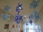 そんな中、施設の中も冬景色を楽しんでいただこうと雪の結晶の飾りが廊下一面に登場して素敵な雰囲気になっています♪